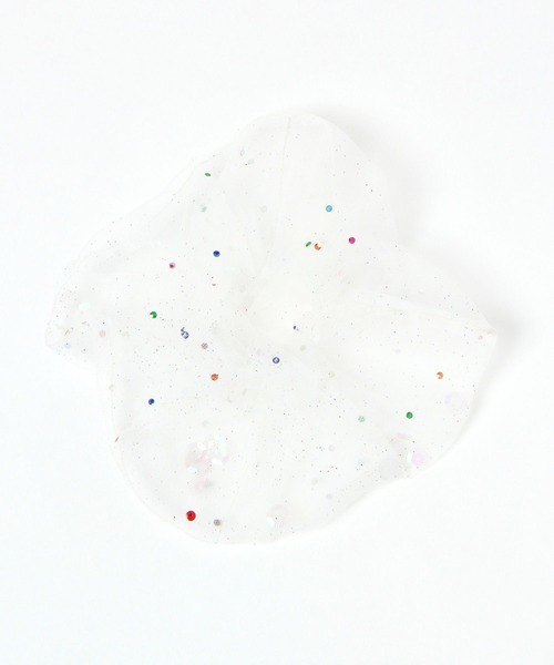 シアー素材の中にスパンコールを散りばめたシュシュ。