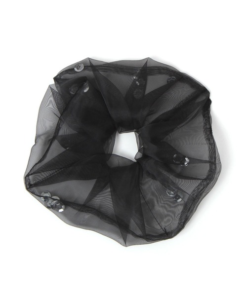 シンプルなシアー素材の中にスパンコールを散りばめたシュシュ。