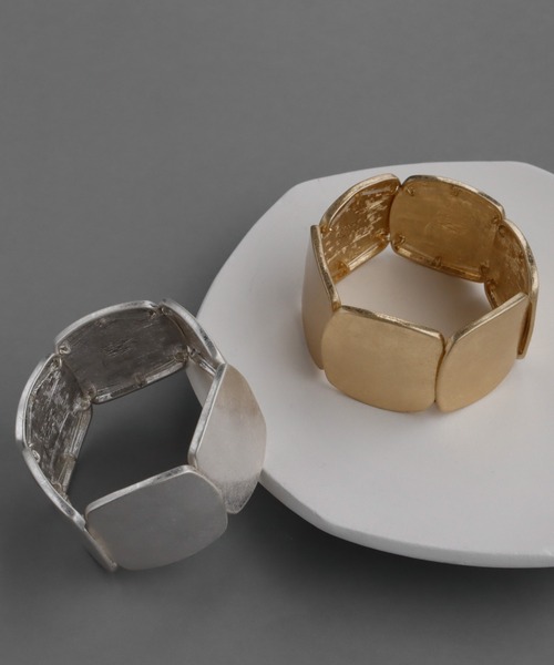 角を落としたスクエアパーツを連ねたデザインで、手元にさりげない個性をプラスします。