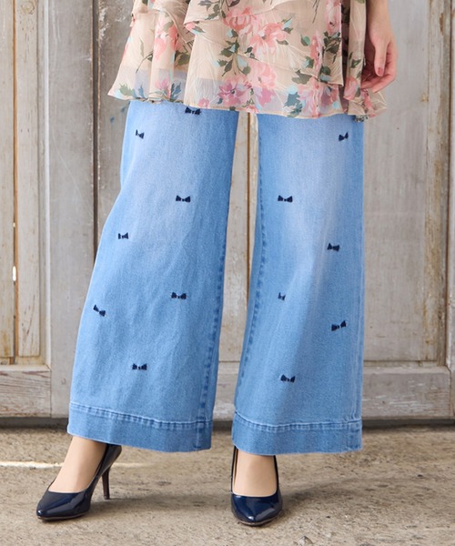 今季らしいワイドシルエットに、さりげないリボン刺繍をあしらった、おとな可愛いデザイン。