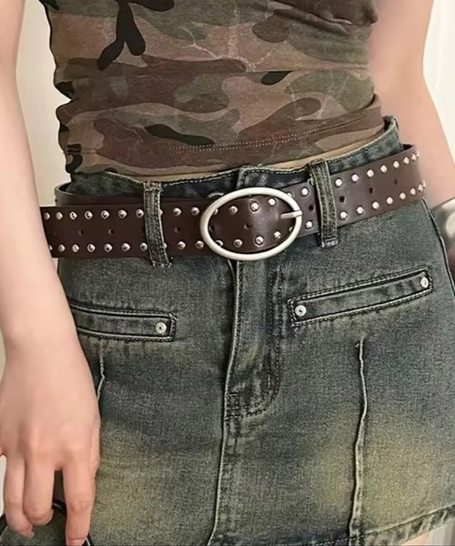 【 Port / ポート 】 オーバル バックル ダブル スタッズ ベルト