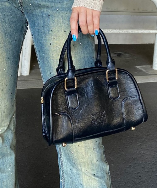 フロントエンボスロゴが秋服から冬服コーデのアクセントになったミニボストンバック。ハンドバッグ・ショルダーバッグの