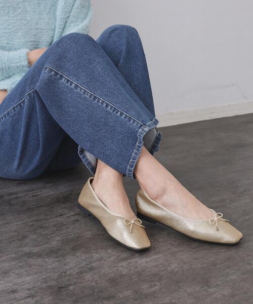 ・甲を深めにデザインしたスクエアトゥのバレエシューズ