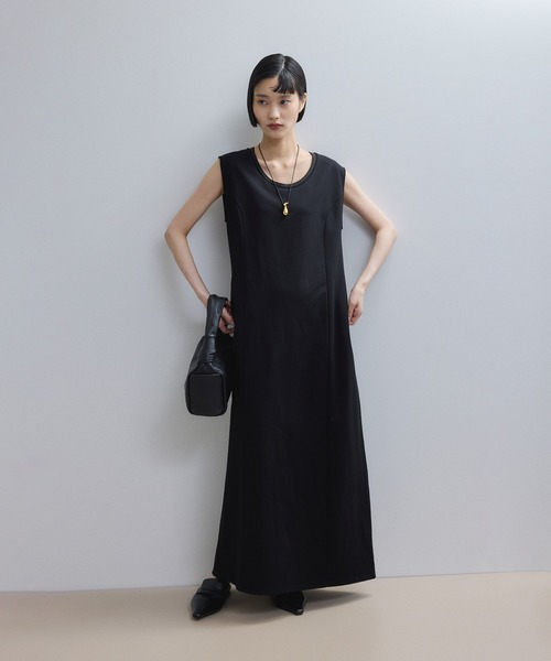 《ウォッシャブル》シンプルなバックデザインが後ろ姿も魅力的な女性に。リラクシーな着心地とともに、さりげないバイカラーがこなれ感を演出してくれるノースリーブワンピース◆2025-26秋冬◆