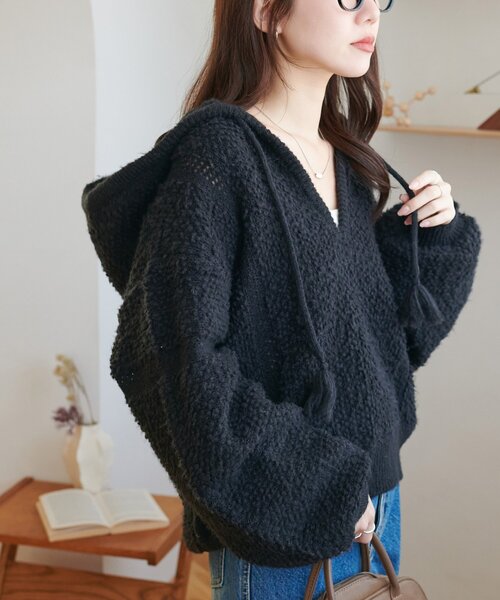 ふんわり柔らか、ぬくもり感じるループヤーンフードプルオーバー●デザイン表面に表情のあるループヤーン素材を使用したシーズンムード高まるアイテム。