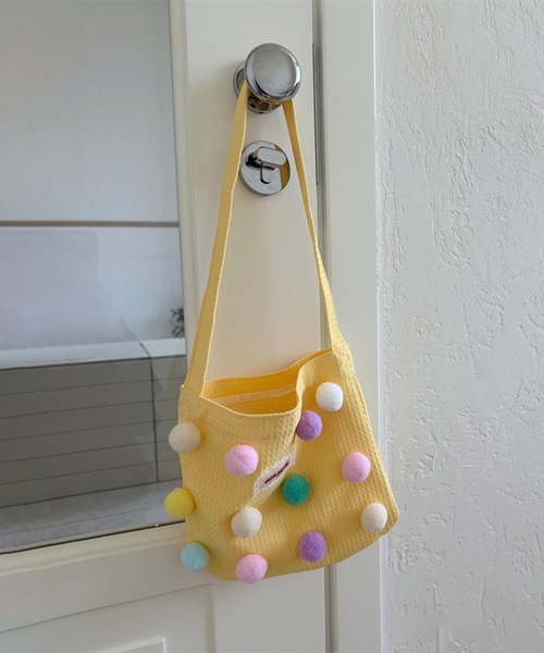 見た瞬間にキュンとする!ふわふわぽんぽんがいっぱいついた、キッズ向けミニショルダーバッグが登場?カラフルな立体ぽんぽんがアクセントになっていて、おしゃれが大好きなキッズにぴったりのアイテムです。軽くて柔らかいワッフル調の素材を使っているので、肩にかけてもストレスなし◎お出かけはもちろん、遠足やちょっとしたお買い物バッグとしても大活躍!お気に入りのおやつや小物を入れて、自分だけのバッグに♪【おすすめコーデ】・ガーリーなワンピースに合わせて、とびきり可愛いお出かけスタイルに。・デニム×Tシャツのカジュアルコーデにプラスして、遊び心をプラス。【おすすめの使用シーン】・お友達とのお出かけ・公園遊びや散歩・保育園・幼稚園の通園バッグにも◎