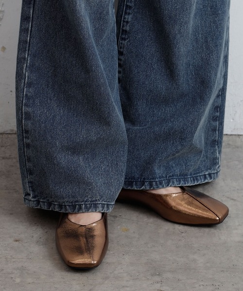 【リュクスな輝きが魅力のメタリックフラットシューズ】洗練されたスクエアトゥと、上品なメタリックの輝きが目を引くメタリックフラットシューズ。無駄をそぎ落としたミニマルなデザインと深みのあるこだわりのメタリックカラーがの大人のこなれ感を演出します。スクエアトゥのデザインは、トレンド感がありながらも上品でクラシカルな印象に。足への負荷がかかりにくい柔らかいインソールを使用し、フラットソールなので、長時間履いても疲れにくくデイリー使いに最適です◎カラーは、華やかで都会的な印象ゴールド、肌なじみが良く上品で落ち着いた印象ブロンズ、深みのあるカラーで洗練された印象ネイビーの3色をご用意しました。通勤・通学などの普段使いから、お出かけや旅行まで、幅広いシーンで活躍してくれること間違いなし。一足持っているだけで、コーディネートの幅がぐっと広がる、優秀アイテムです。インソールの爪先部分にはバクテシャット®という制菌・消臭加工のある素材を使用しています。