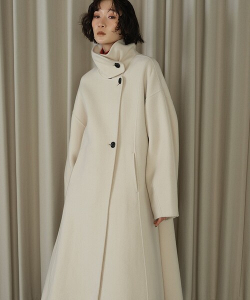ロング丈×高めの襟がモードな雰囲気のリバーコート■デザイン