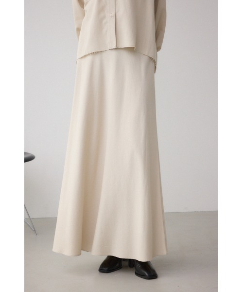 裾に向かってゆるやかに広がるセミフレアシルエットは、生地をバイヤスで使用することで、美しいシルエットを再現しています。