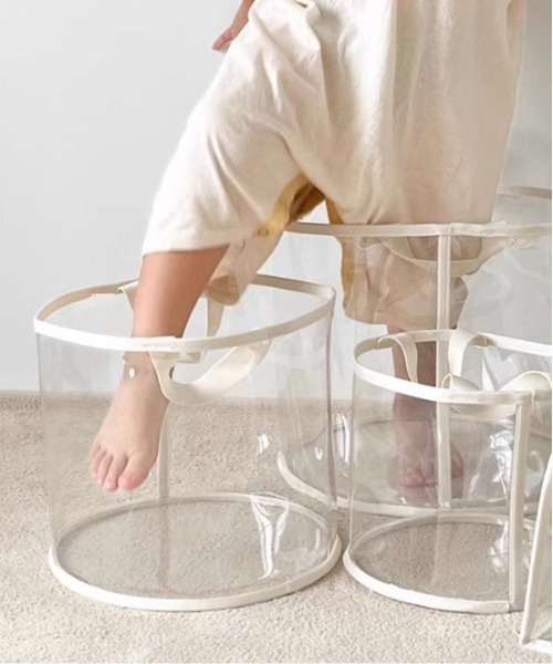 中身がひと目で見える、透明素材のクリア収納ボックス。