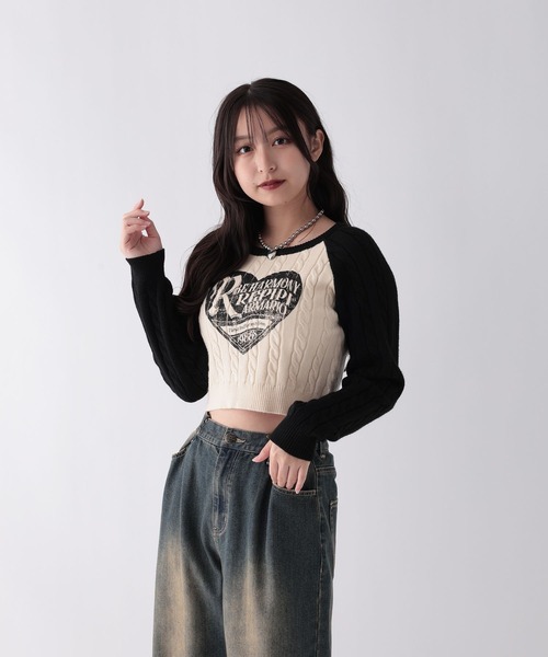 前面のハートプリントがコーデのアクセントに。