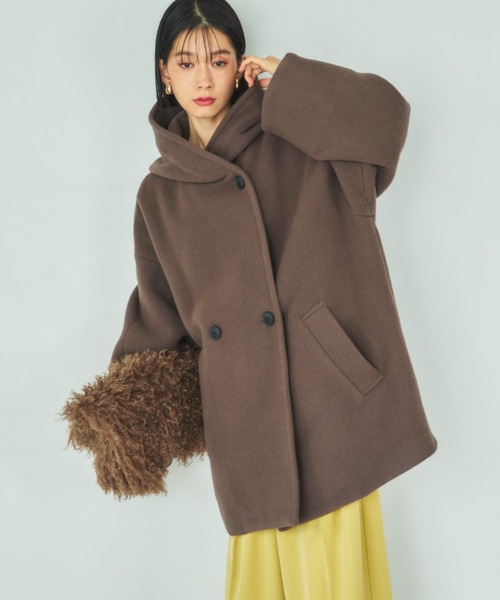 ・ダブルの合わせでフード付きでもカジュアルになりすぎない
