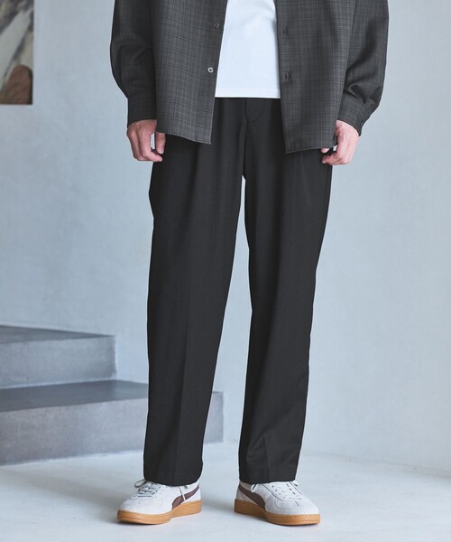 ワンタック入りのリラックスしたウエストイージー仕様ながら、クリース入りデザインや前開きファスナーが絶妙なバランスが特徴。