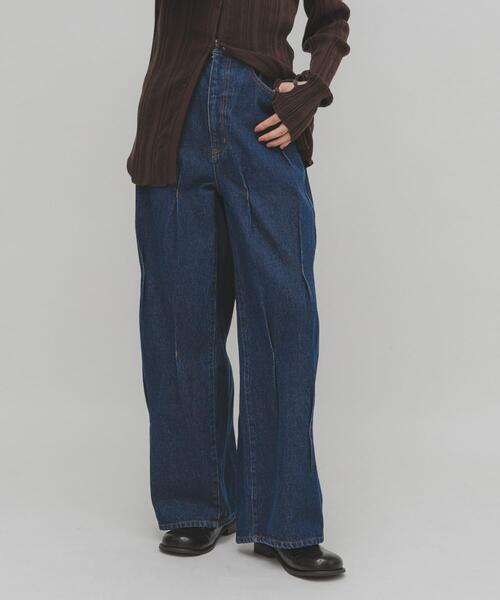 【ワードローブに加えたい変化球デニム】ボディ全体に施されたタックが珍しく、ワードローブに持っておくと便利な変化球デニム。一癖あるデザインながらも、ストレートシルエットなので腰回りを程よくカバーしてくれます。デザインのあるパンツなので、ベーシックトップスを合わせるだけでこなれ感を演出します。