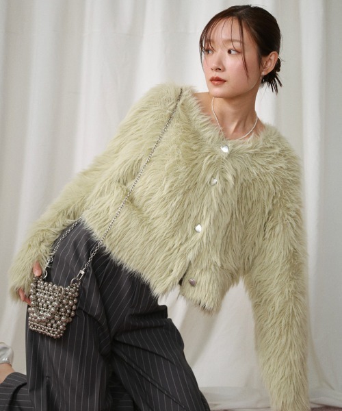 ふわっと柔らかく、高級感のある着心地のいいシャギーカーディガンです。