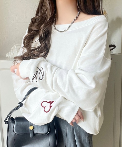 右袖には赤いハートモチーフの小さな刺繍が遊び心をプラス♪