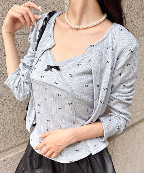 キャミソールの胸元には立体的なミニリボンをプラス。細部まで抜かりない可愛さです♡