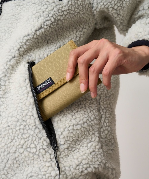 コインポケットに加え、カードポケットを内側に2つ、外側に1つ、お札用のポケットを1つ、Dカンを備えています。廃材から100%リサイクルされたポリエステル糸によるCORDURA?ファブリックは、軽量且つ、引裂、摩擦、摩耗に対して優れた耐久性があります。配色糸を用い、ドビー織りでダイヤチェック柄RIPSTOPを構成、強度に加え見た目にもインパクトがあります。
