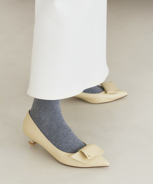 立体感あるモチーフが目を惹くパンプス。