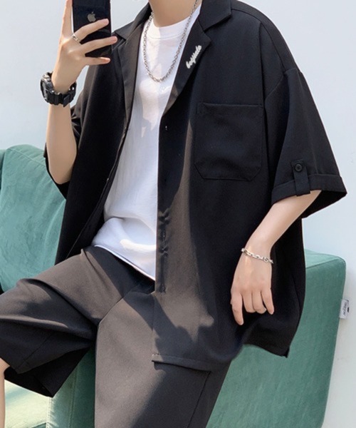 シャツは、旬のオープンカラーで、肩を落としたドロップショルダーデザインがリラックス感を演出します。