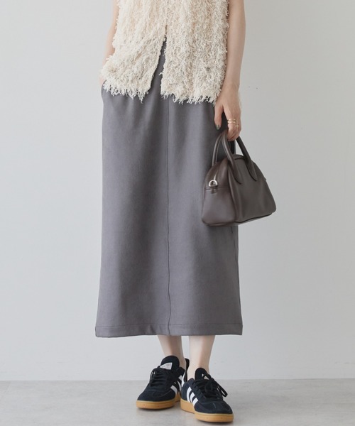 カットソー素材にレザー風プリントを施したナロースカート。
