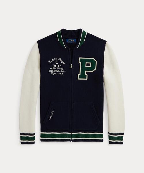 ・ストライプ入りのリブニットのベースボールカラー / フルジップフロント / 特別に開発した”Polo”のロゴ入りジッパープル。