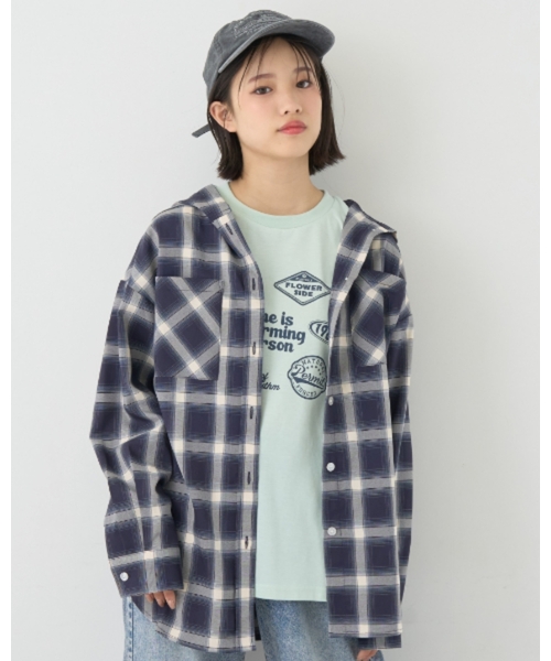 大胆なチェック柄が目を引くシャツパーカとロンTのセットです。