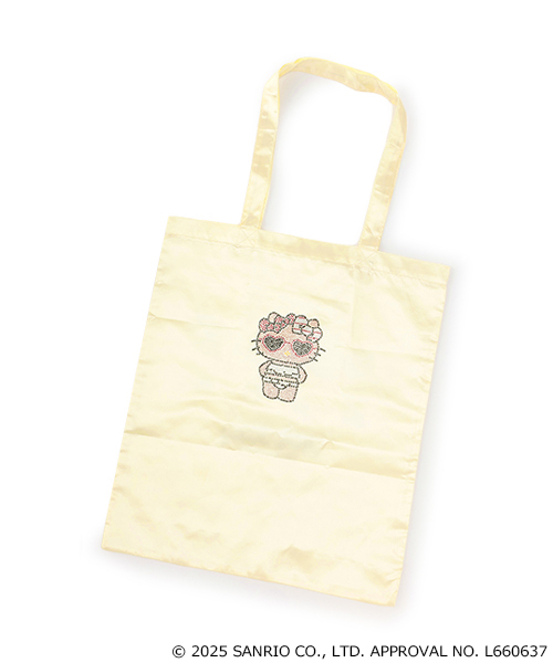 夏のバカンスを楽しんでる「ハローキティ」のプリントとキラキラのラインストーンが可愛いトートーバッグです♪使いやすいサイズでサブバックとしても◎