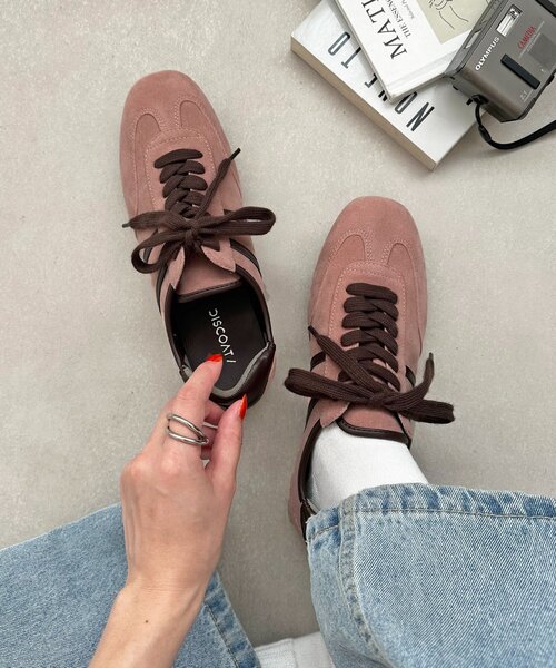 上品な風合いが魅力のスエード調サテンバレエスニーカー。軽やかで足にフィットする履き心地と、丸みのあるフォルムが大人可愛い印象に?付属のオーガンジーのリボンと通常のシューレースの2種類で、気分やコーデに合わせてアレンジが楽しめます。ワンピースやスカートと合わせてフェミニンに、デニムやパンツスタイルでカジュアルダウンにも◎普段使いはもちろん、旅行やお出かけにも活躍する1足です。