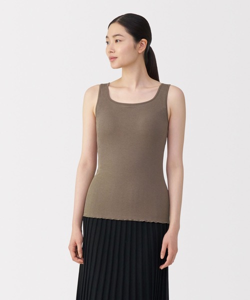 ・リブ地で、見せて着用しても違和感のないカップ付きインナーです。