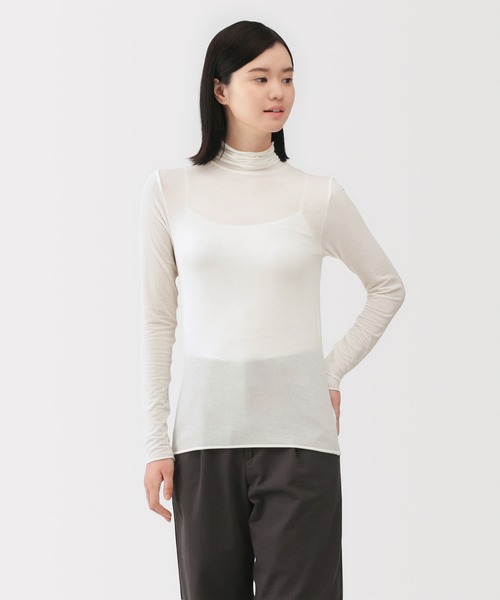 やわらかく、吸湿発熱性を持つ、透け感のあるインナーです。ウールと天然由来素材を使用。