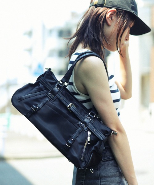 強めルックなベルト+リベットをバッグ全体にあしらい、韓国系Y2Kテイストなトレンドデザイン♪