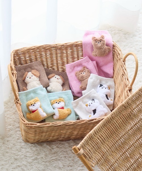 ぎゅっとだっこポーズが可愛い♪マスコット付きソックス。