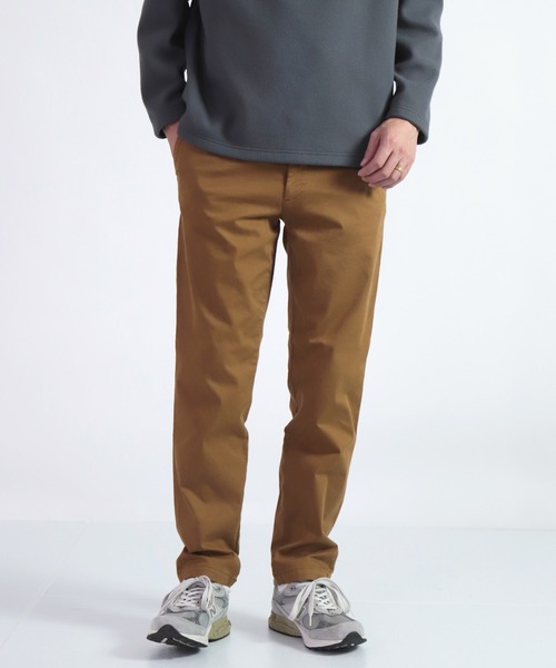 ISKO社のストレッチチノ素材を用いた、あらゆる動作の自由度を高めた生地感が特徴の素材です。しっかりとストレッチが効いた穿き心地が自慢で、質感と肌あたりも良いので自然と体に馴染んでくれます。仕上げの製品染めにてカラーをトッピングしカジュアルさを引き出しています。
