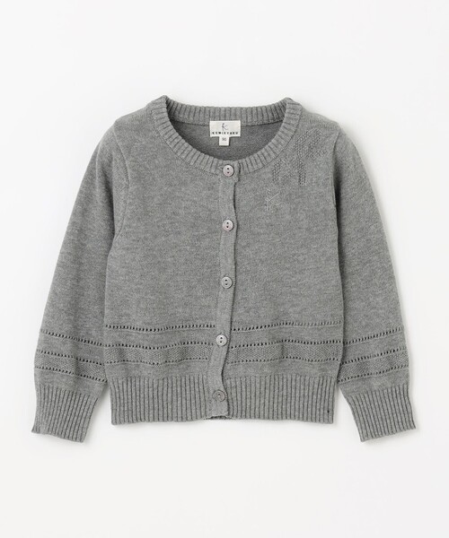 定番のカーディガンをアップデート。左胸にさりげなく施されたカノコ編みのリボンモチーフがアクセントになった、上品で甘すぎないデザインに仕上げました。ウエスト部分にもリボンモチーフとリンクさせた透かし編みのラインを施しております。ボタンを閉じてトップス風にも、羽織りとしても着用可能で、1枚でコーディネートの幅が広がります。