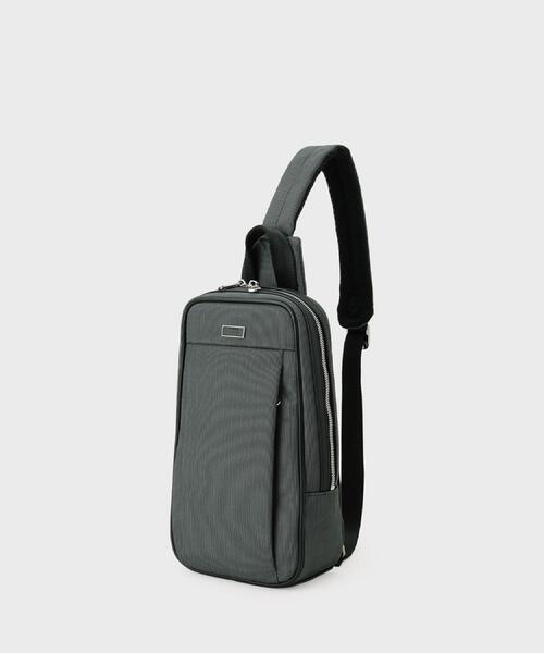 スッキリした前胴デザインに隠しの縦ファスナーポケットが使い易いワンショルダーバッグ。