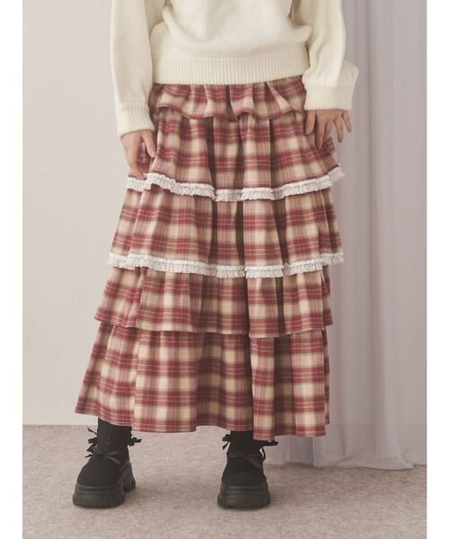 トレンドのティアードフリルを5段たっぷり使用したチェックティアードスカート〇