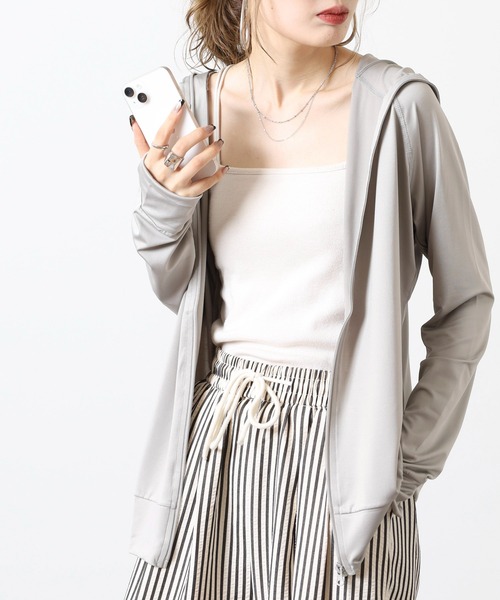 バラクラバ風のデザインで鼻先まで覆え、指穴付き袖やフードジップ仕様など、日焼け&髪型にも配慮された多機能ウェア。