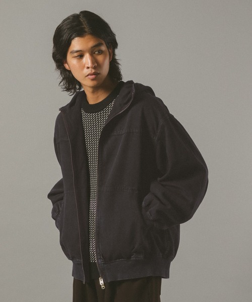 ゆったりとしたシルエットのワークブルゾンは、太めのパンツとの相性が抜群です。