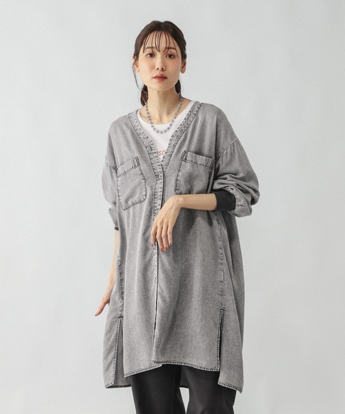 落ち感のあるテンセル素材でケミカル加工を施したシャツワンピース。