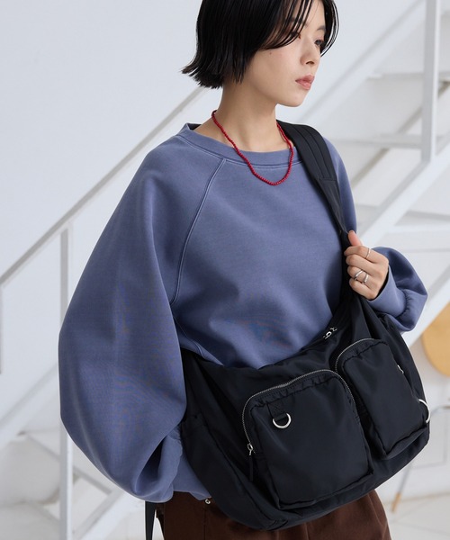 ダブルポケットが旬の撥水機能ナイロンマルチボディバッグ