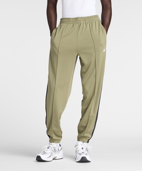 フロントのピンタック、左腿のNBロゴ刺繍、サイドラインテープがデザインポイントです。