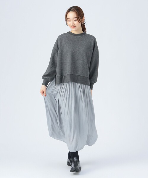 こなれた洒落感のあるコーディネートが即完成するプルオーバーとスカートのセットアイテム。プルオーバーは軽くて暖かく、ハリのあるシルエットが魅力でシンプルながらも上品な印象を与えます。程よい光沢感のあるフレアスカートは動くたびに美しく揺れ、華やかさを演出。ウエストはゴム仕様なので、着心地も抜群です。