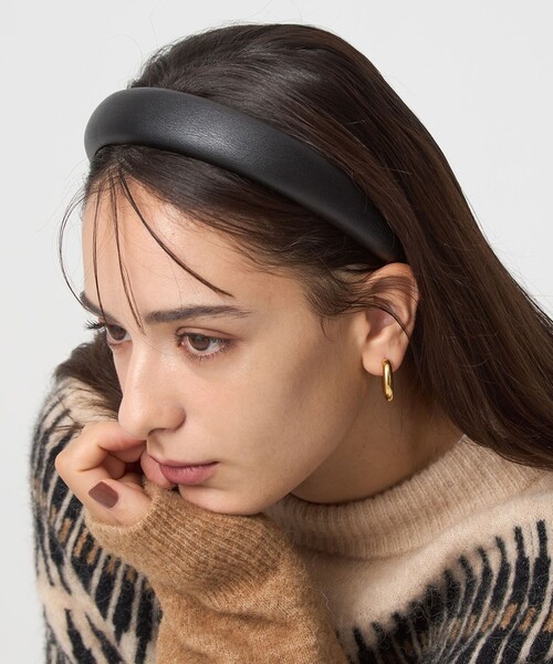 ヘアアレンジが簡単にきまる、レザーライクな素材を使用したパデットカチューシャ。
