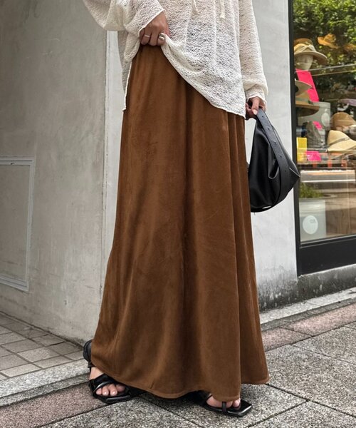 柔らかなスウェードタッチ素材が魅力のストレートスカート。