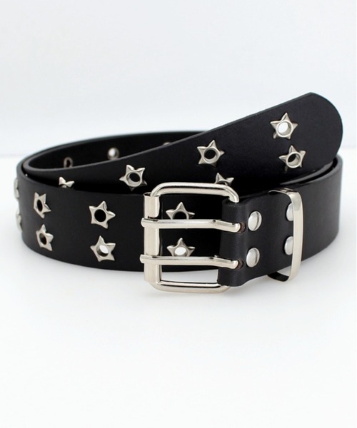 星型スタッズが視線を惹きつける、ダブルピン仕様のワイドベルト。