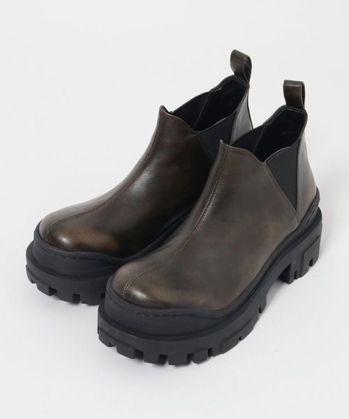 丸みがあるつま先のシルエットと、ボリュームソールが特徴のブーツ。