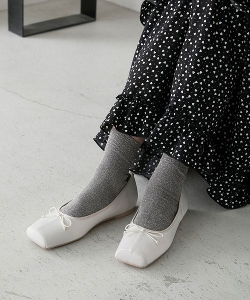 参考商品名:【forksy.】サテンスクエアトゥバレエシューズ