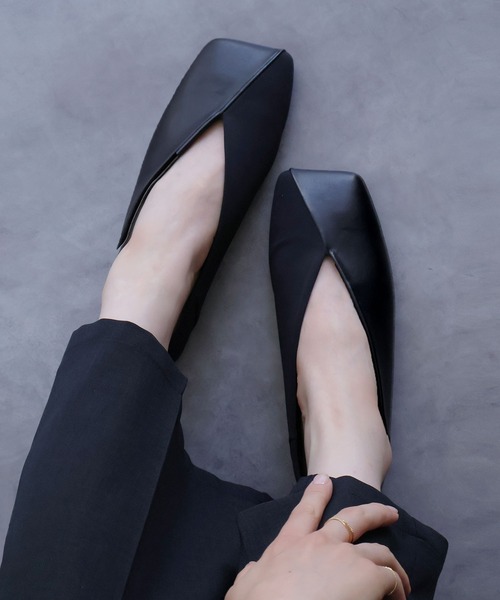✔ 深Vカット×スクエアトゥで足元すっきり華奢見え