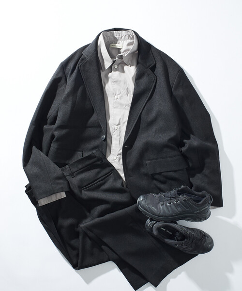 単品使いでジャケットをデニムやチノに合わせたり、パンツにはニットやパーカーを合わせるなど、幅広いスタイリングに対応可能の便利な万能セットアップです。